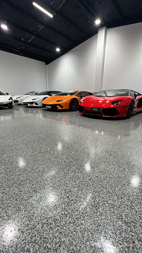 View our epoxy garage flooring installations across Sydney, featuring durable resin coating systems designed for residential garages and automotive spaces. Epoxy flooring creates a seamless, hard-wearing surface that resists stains, tyre wear, and daily use while dramatically improving the appearance of concrete garage floors. This gallery showcases flake epoxy finishes, metallic coatings, and solid colour systems installed by CrownCrete.